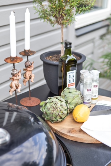 Vi kompletterar med färska örter och snittblommor.